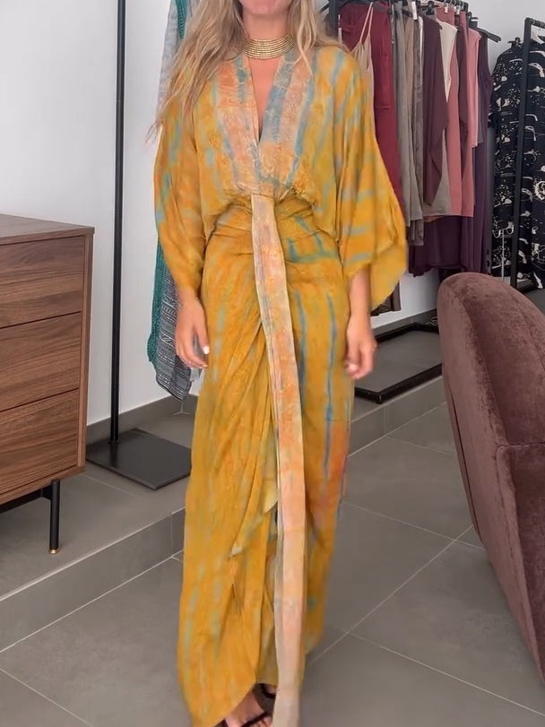 Bohemian Yellow Tie-Dye Print Maxi Dress