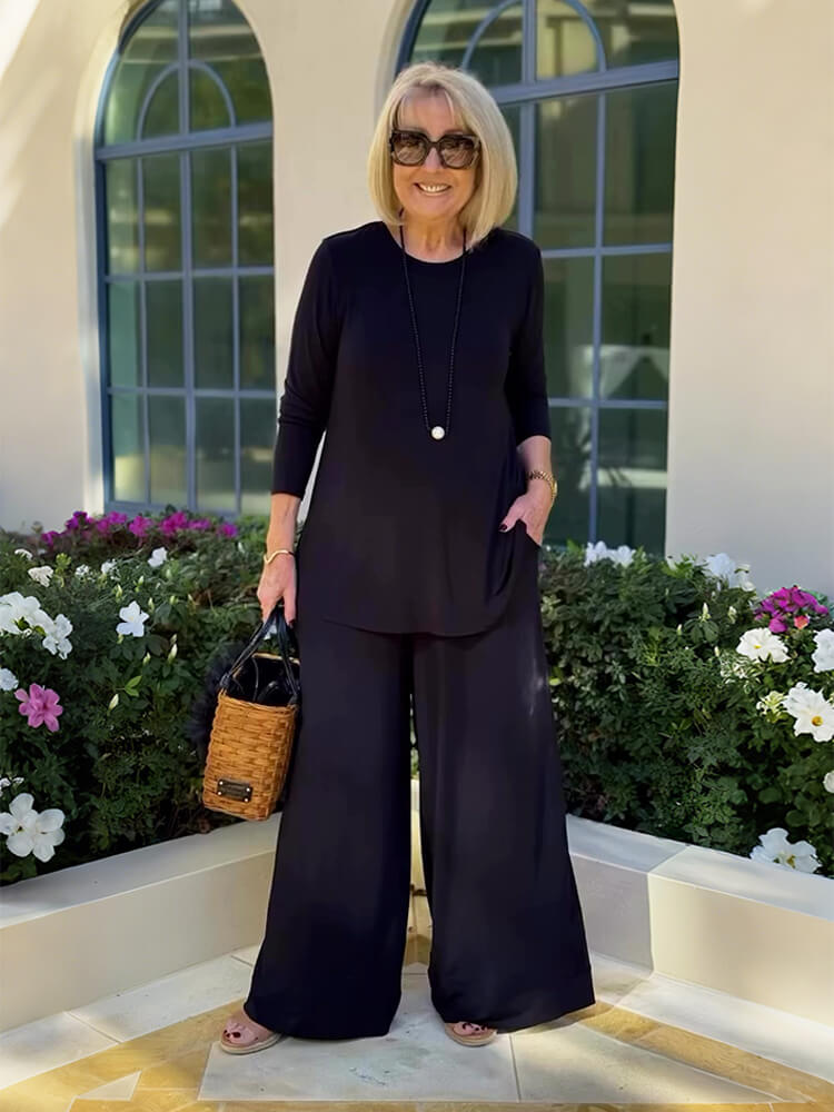 Plus Size Long Sleeve Top & Wide Leg Pants Two-piece set