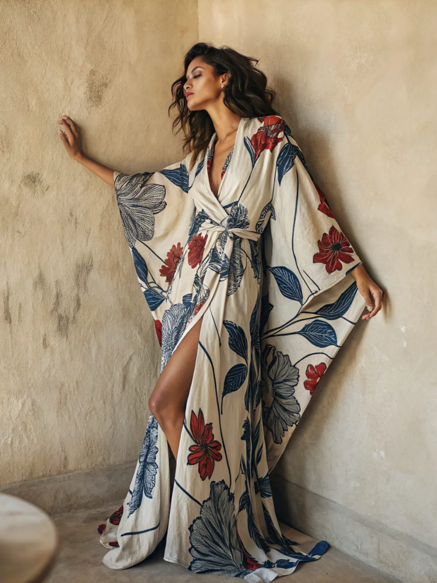 Women's Floral Kimono Linen Robe (with Belt)